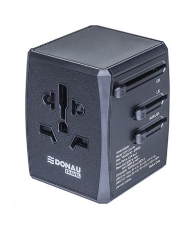 Utazóadapter, univerzális, gyorstöltő, DONAU "Travel 904", fekete